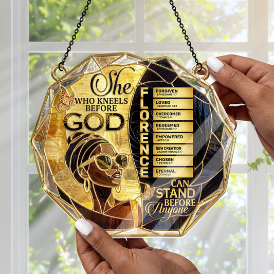She Who Kneels Before God Can Stand Before Anyone - Personalized Acrylic Suncatcher