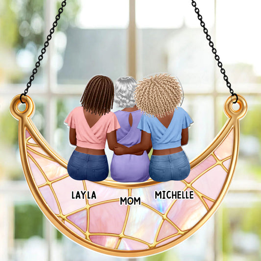 Mother And Daughter Son Moon Love - Personalized Acrylic Suncatcher