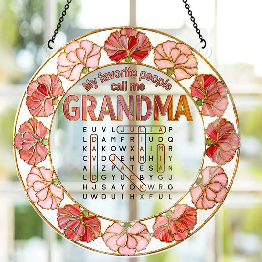 Favorite People Call Me Grandma Word Search Puzzle - Personalized Acrylic Suncatcher