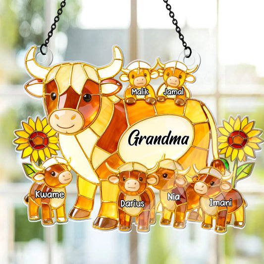 Mama Cow Gift For Mom Grandma - Personalized Acrylic Suncatcher