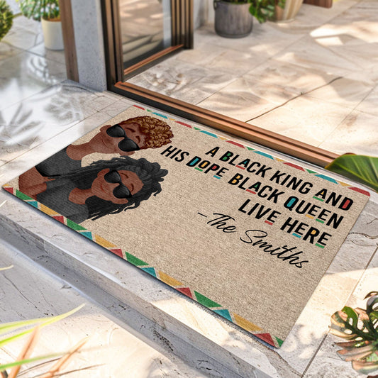 A Black King And His Dope Black Queen Live Here - Personalized Doormat