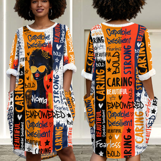 Black Queen Graffiti Style - Personalized AOP Loose Pocket Oversize T-Shirt Dress