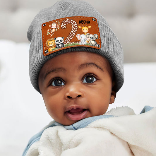 Cute Jungle Animal Age - Personalized Leather Knitted Beanie SBLKBLM2211TA