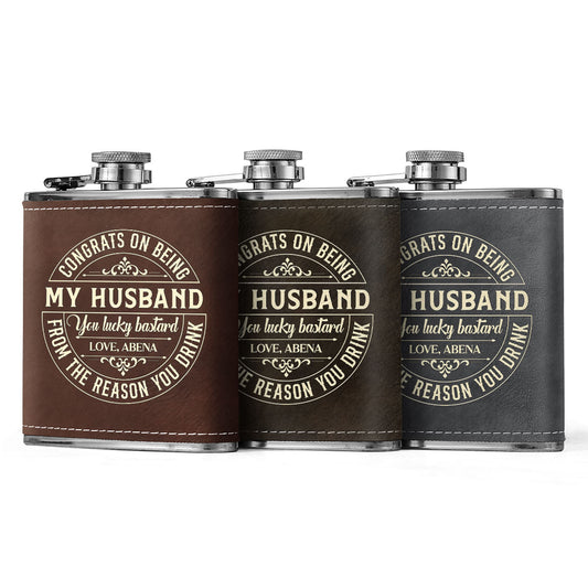 Congrats On Being My Husband - Personalized Leather Flask SBLFLALM2112TA