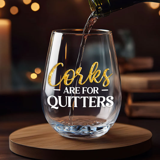 Corks Are For Quitters - Personalized Stemless Wine Glass