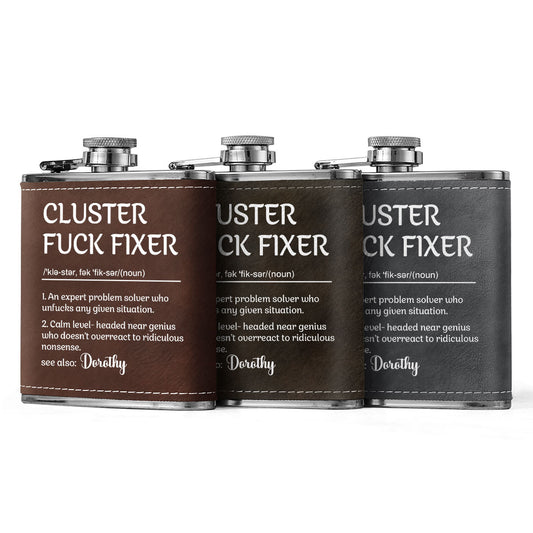 Cluster Fuck Fixer - Personalized Leather Flask