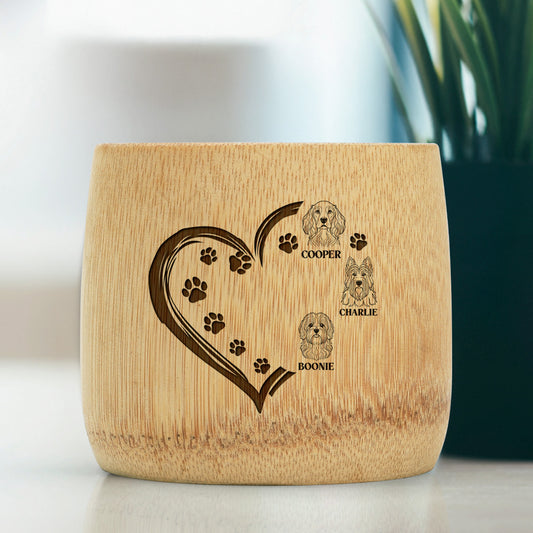 Dog Heart Paw Prints - Personalized Bamboo Cup