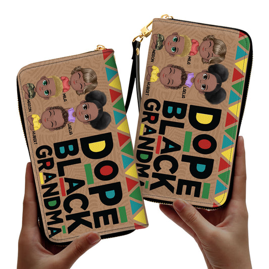 Dope Black Grandma - Personalized Leather Clutch Purse SBCPLN2424L