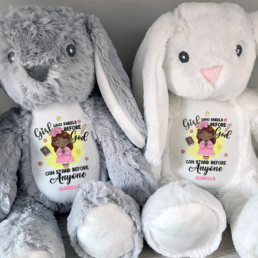 Girl Who Kneels Before God Can Stand Before Anyone - Personalized Stuffed Bunny