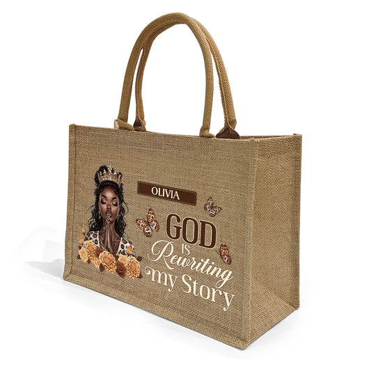 God Is Rewriting My Story - Personalized Jute Tote Bag