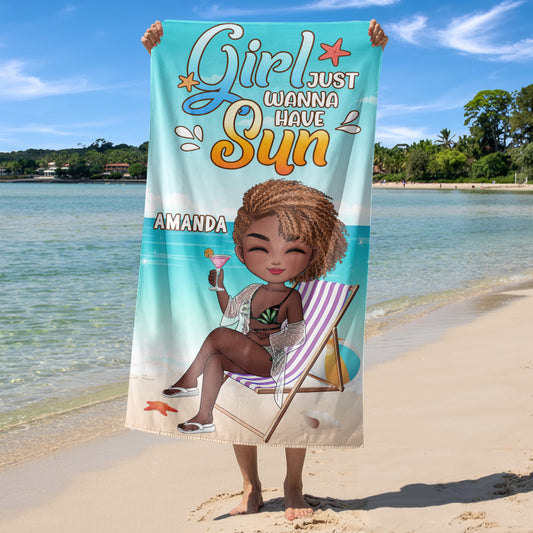 Girl Just Wanna Have Sun - Personalized Beach Towel