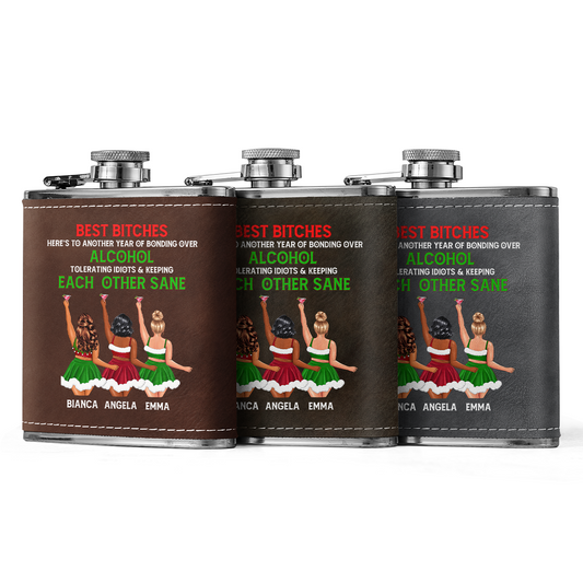 Here's To Another Year Of Bonding Over Alcohol - Personalized Leather Flask