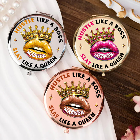 Hustle Like A Boss Slay Like A Queen - Personalized Circle Metallic Mirror