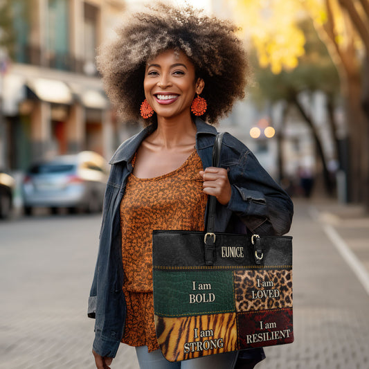 I Am Bold, Loved, Strong, Resilient - Personalized Leather Handbag