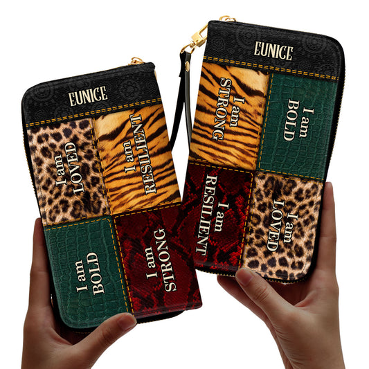 I am BOLD, LOVED, STRONG, RESILIENT - Personalized Leather Clutch Purse STB49