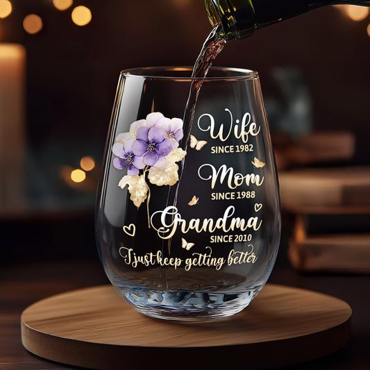 I Just Keep Getting Better - Personalized Stemless Wine Glass
