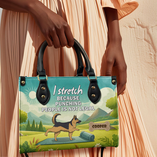 I Stretch Because Punching People Is Not Legal - Personalized Leather Hand Bag SBLHBT69