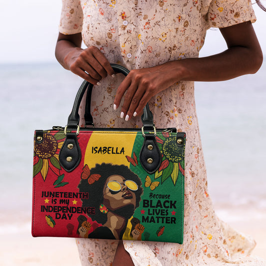 Juneteenth Is My Independence Day - Personalized Leather Handbag SBLHBT54