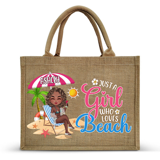 Just A Girl Who Loves Beaches - Personalized Jute Tote Bag