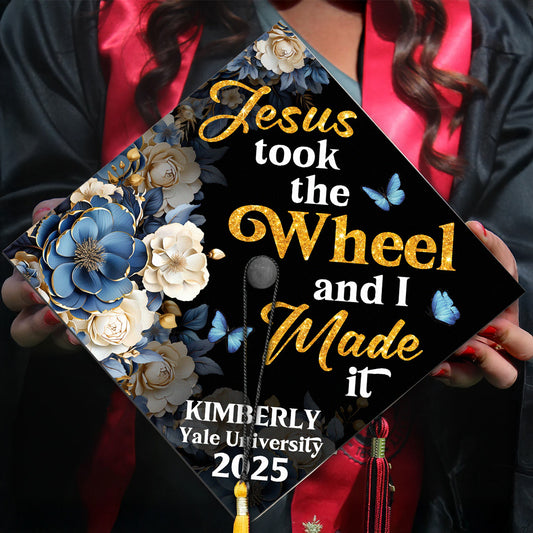 Jesus Took The Wheel And I Made It - Personalized Graduation Cap Topper