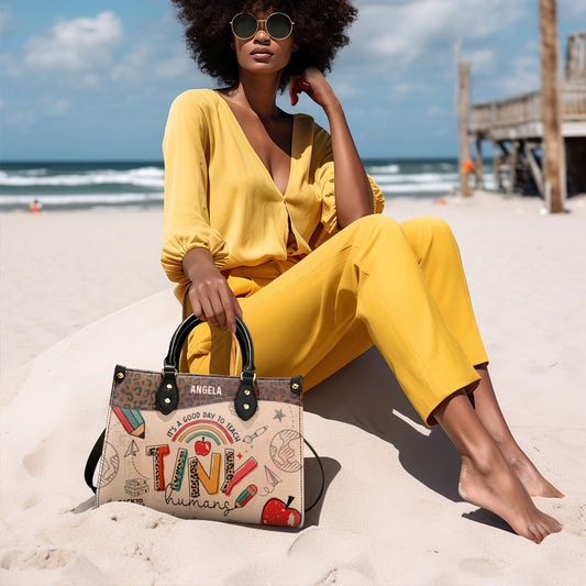 It's A Good Day To Teach Tiny Humans - Personalized Leather Handbag SBLHBLN953M