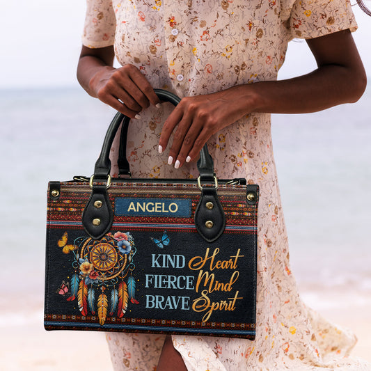 Kind Heart Fierce Mind Brave Spirit - Personalized Leather Handbag MB97