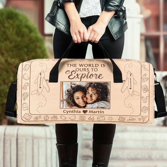 The World Is Ours To Explore - Personalized Minimalist Duffle Bag SBMDBHA39