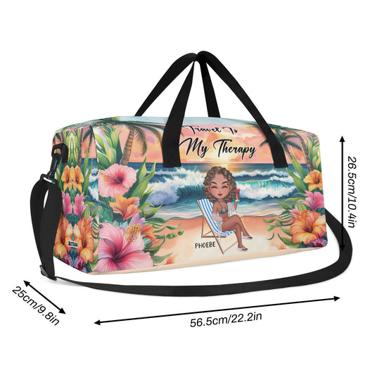 Travel Is My Therapy - Personalized Minimalist Duffle Bag SBMDBN46