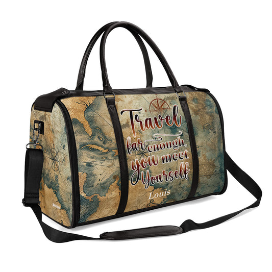 Travel Far Enough You Met Yourself - Personalized Leather Duffle Bag SBDBHA35