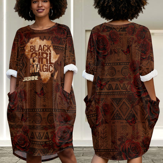 Black Girl Magic - Personalized AOP Loose Pocket Oversize T-Shirt Dress