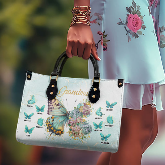 Grandma Butterfly Flower - Personalized Leather Handbag SBLHBLN1414TA