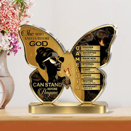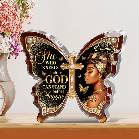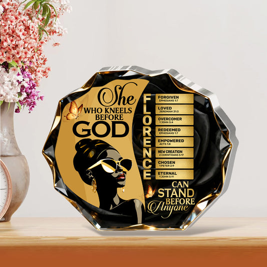 She Who Kneels Before God Can Stand Before Anyone - Personalized Custom Shaped Acrylic Plaque