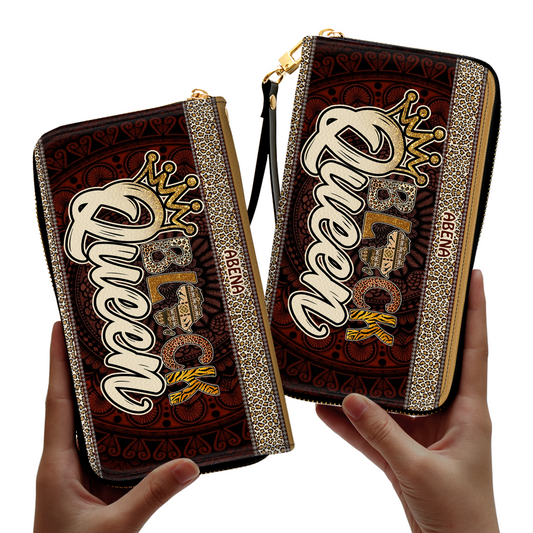 Black Queen Graffiti Style - Personalized Leather Clutch Purse SBCPLM2400L