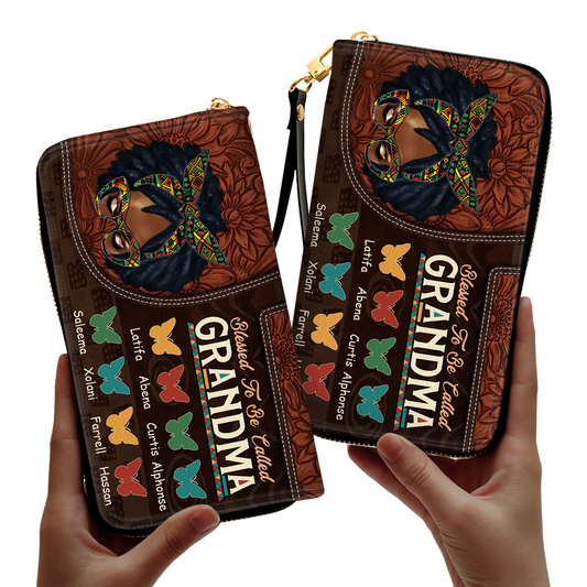 Blessed To Be Called Grandma - Personalized Leather Clutch Purse SBCPLM2593M