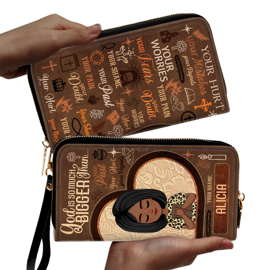 God Is So Much Bigger Than - Personalized Leather Clutch Purse SBCPLM2682T