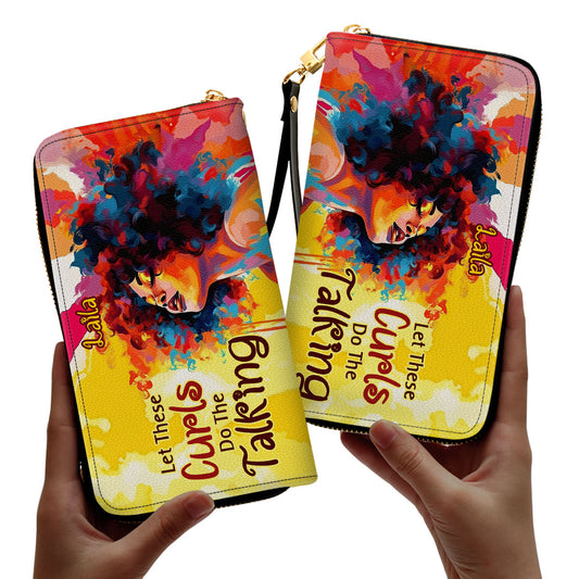 Let These Curls Do The Talking - Personalized Leather Clutch Purse SB18