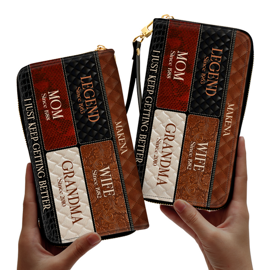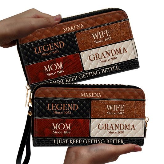 Grandma Just Keep Getting Better - Personalized Leather Clutch Purse
