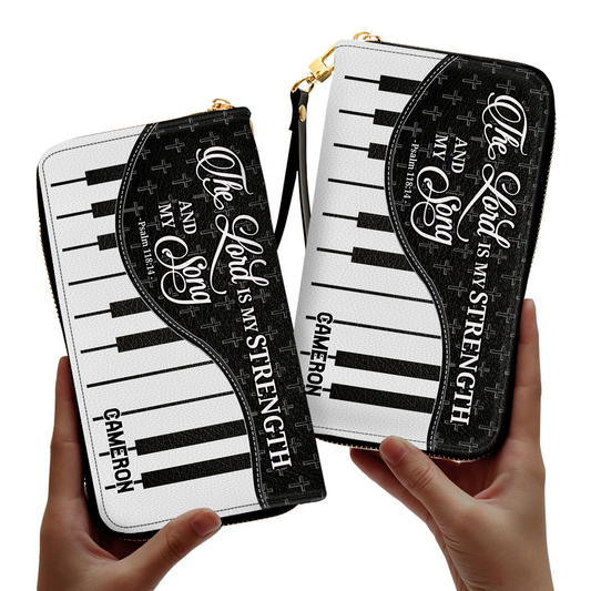 The Lord Is My Strength And My Song - Personalized Leather Clutch Purse