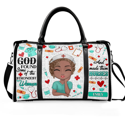 God Found Some Of The Strongest Women And Made Them Nurses - Personalized Leather Duffle Bag