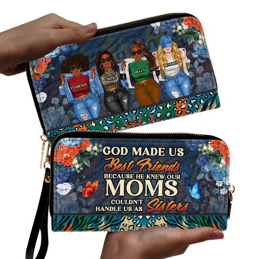 God Made Us Best Friends - Personalized Leather Clutch Purse