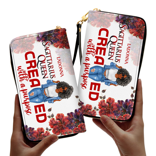 Horoscope Queen Created With A Purpose - Personalized Leather Clutch Purse