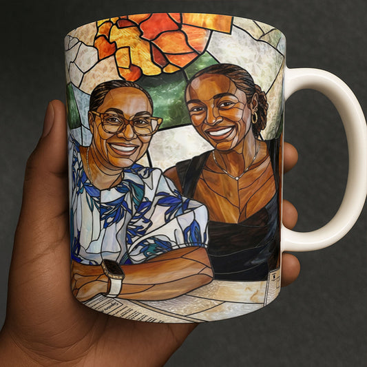 Custom Photo Stained Glass Portrait Mom Grandma Parents Family - Personalized Ceramic Coffee Mug