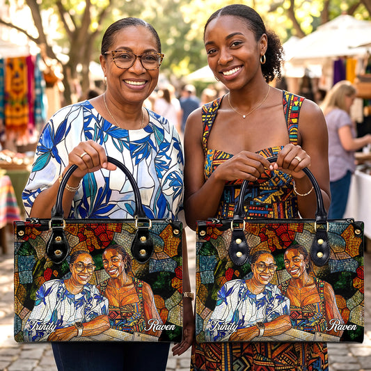 Custom Photo Stained Glass Portrait Mom Grandma Parents Family - Personalized Leather Handbag