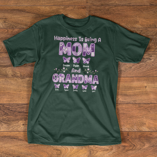Happiness Is Being A Mom And Grandma - Personalized 2D Unisex T-shirt