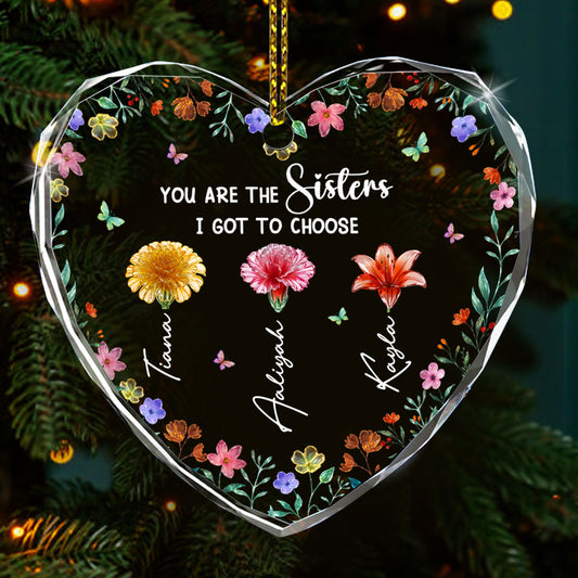 Blooming Sisters - Personalized Heart Shaped Glass Ornament