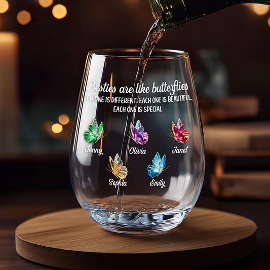 Sisters Are Like Butterflies - Personalized Stemless Wine Glass