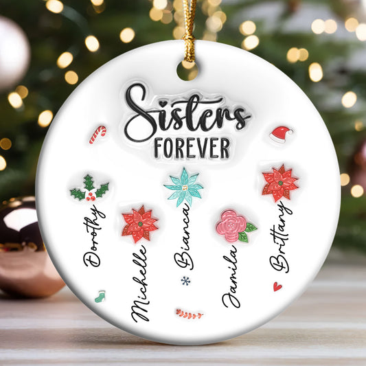 Sisters Forever Christmas Flowers - Personalized Round Shaped Ceramic Ornament