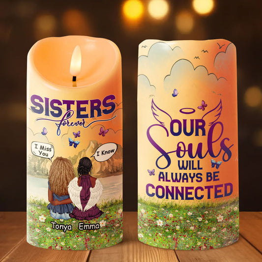 Sisters Forever Our Souls Will Always Be Connected - Personalized Flameless LED Candle