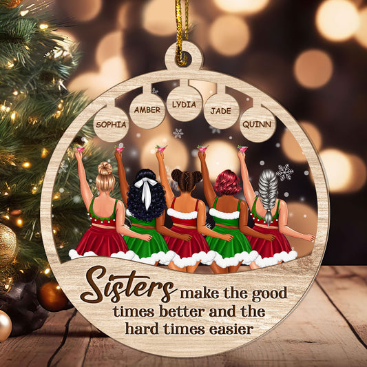 Sisters Make The Good Times Better And The Hard Times Easier - Personalized Wood & Acrylic Ornament