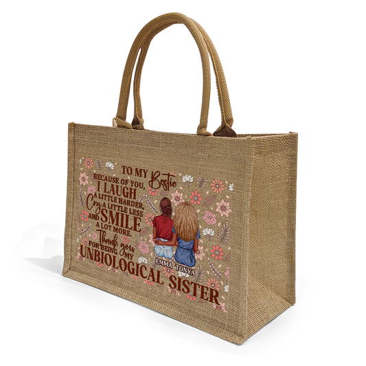 Because Of You I Laugh A Little Harder - Personalized Jute Tote Bag